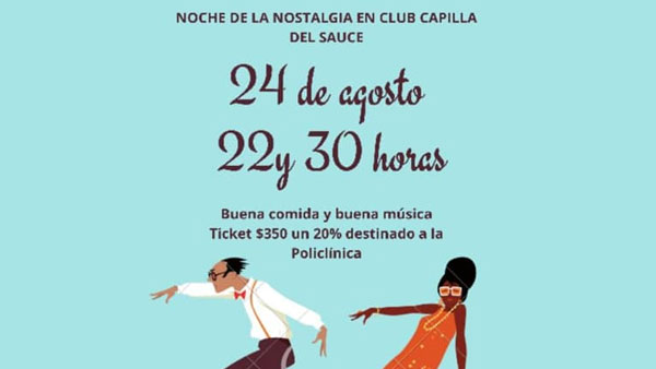 El sábado 24 de agosto se estará celebrando la Noche de la Nostalgia en el Club Social Capilla del Sauce desde las 22:30 horas.